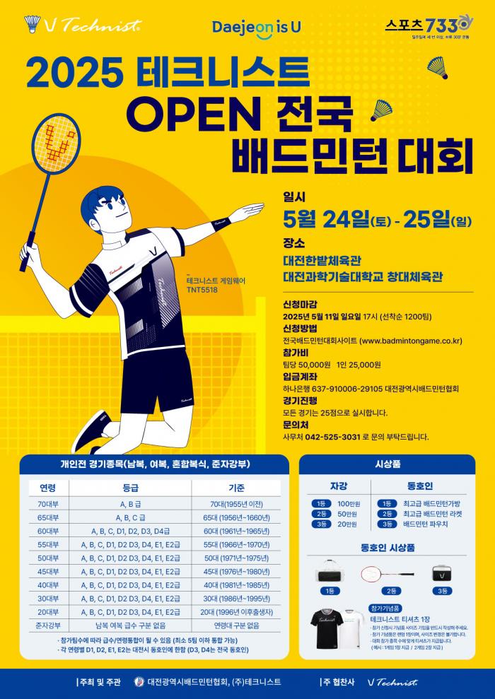 2025 테크니스트 OPEN 전국 배드민턴대회 종합 안내사항
